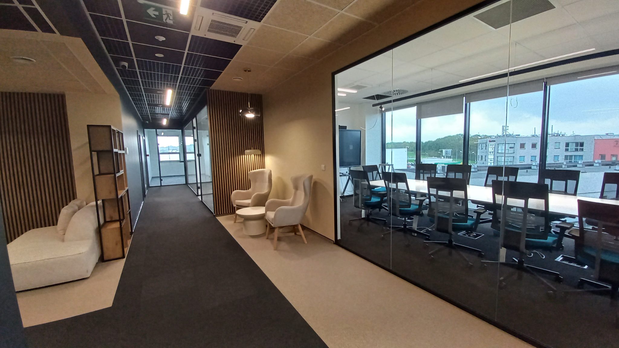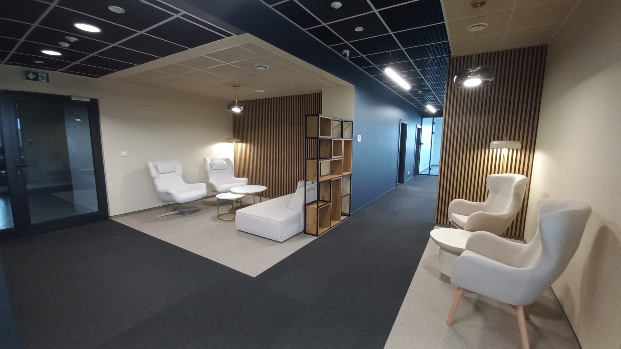 - lobby i wyposażonych sal konferencyjnych (w tym: dwie sale do 6 osób każda oraz jedna sala konferencyjna do 12-osób),